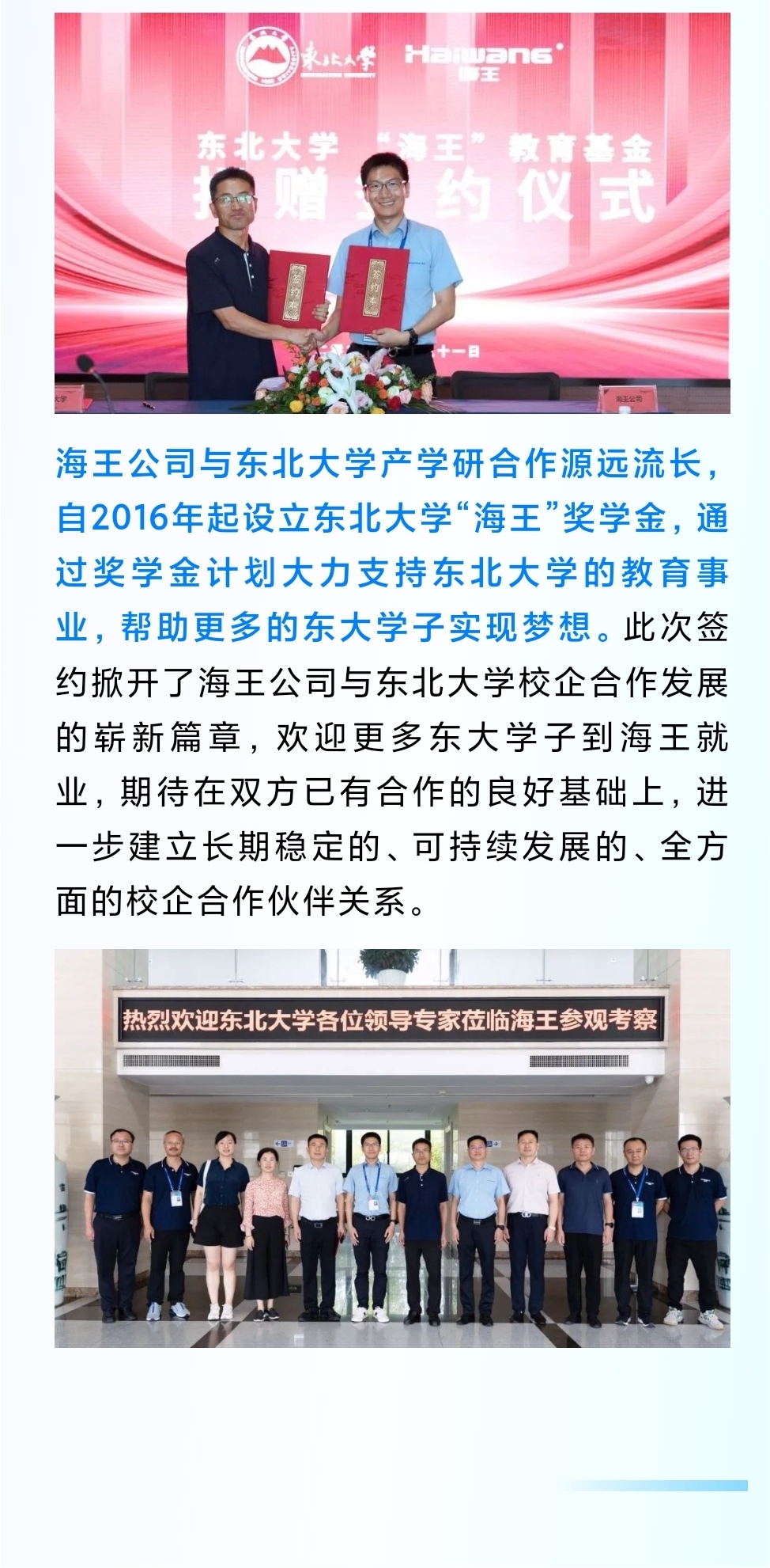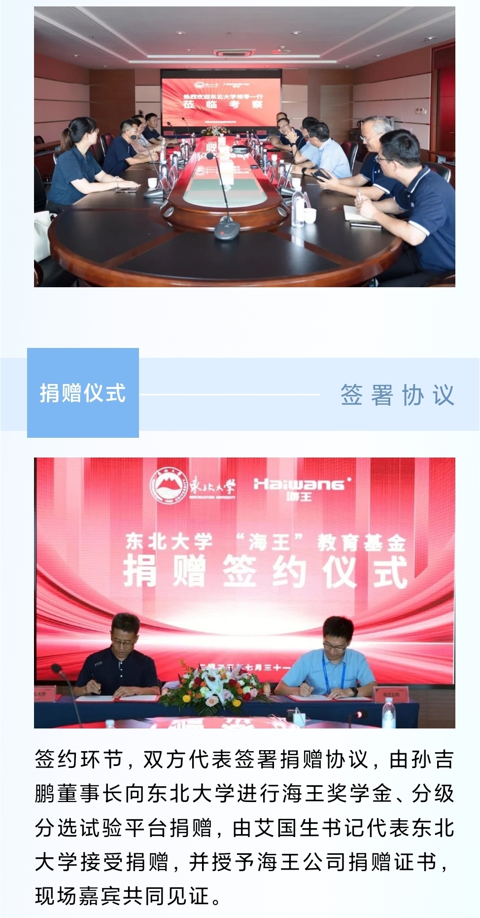 海王公司與東北大學(xué)舉行教育基金捐贈簽約儀式